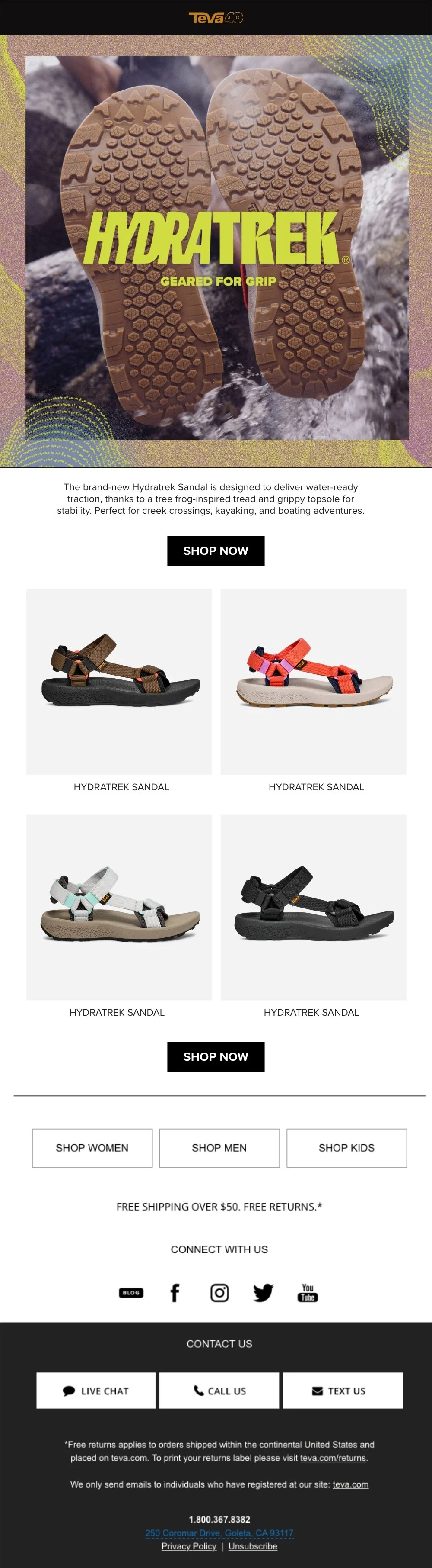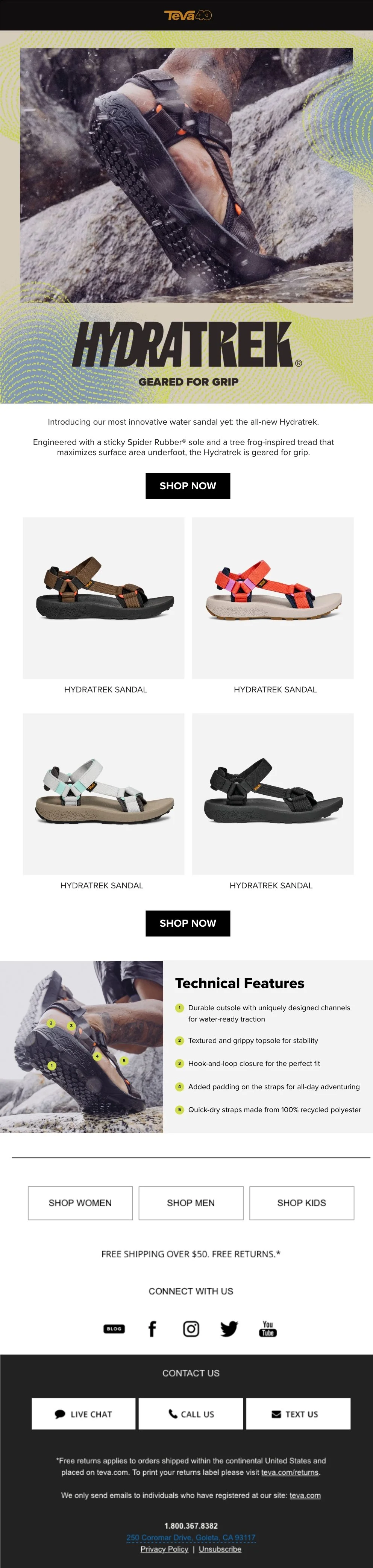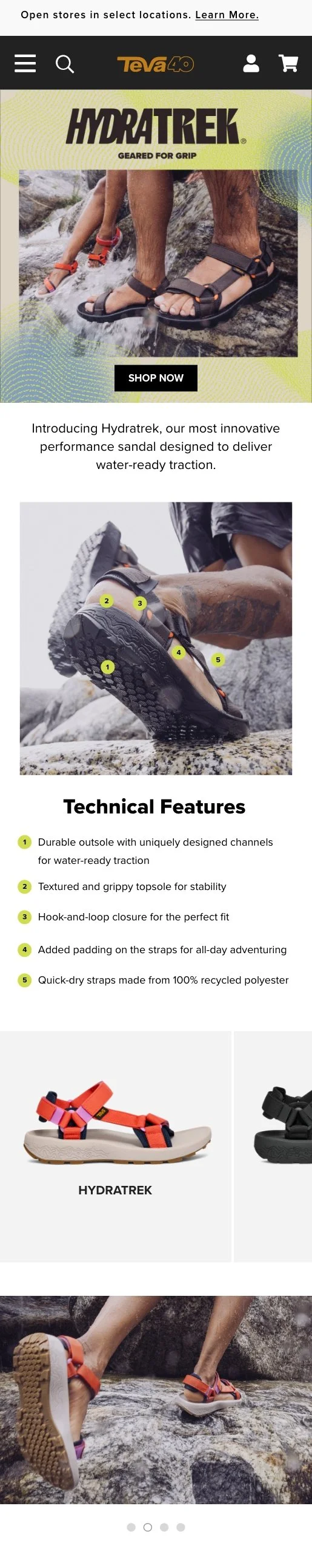 To introduce their new and innovative product line, the Hydratrek, Teva rolled out a detailed and informative launch highlighting the key features and benefits of their new sandal.